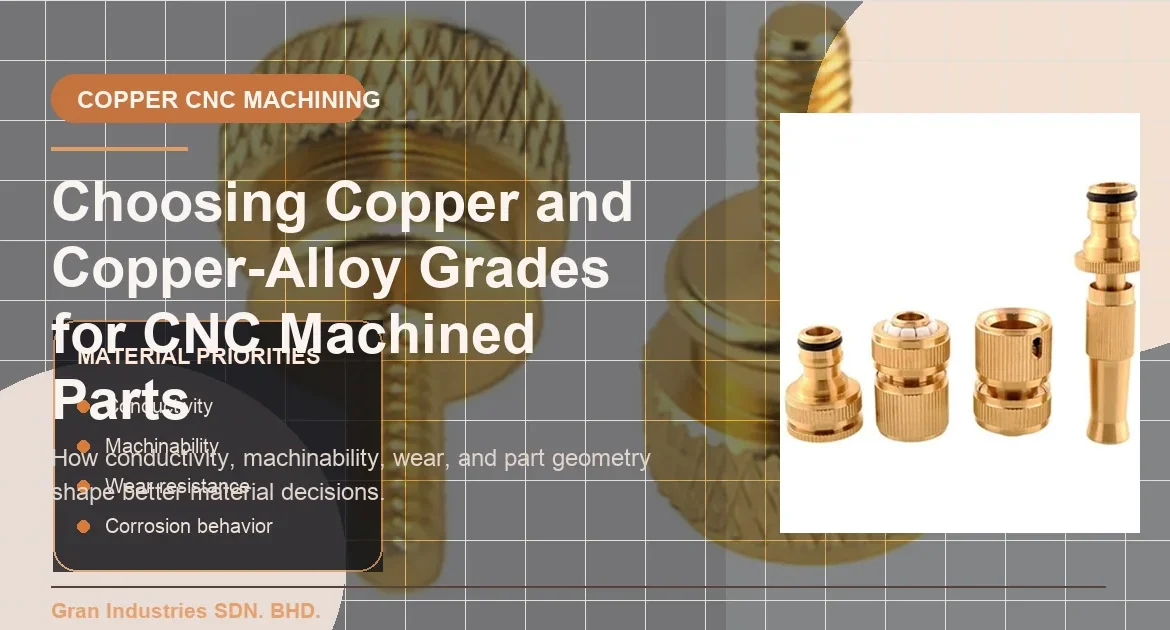 Le choix de la bonne qualité de cuivre ou d'alliage de cuivre permet aux pièces usinées par CNC d'équilibrer la conductivité, l'usinabilité, le comportement à la corrosion, la résistance à l'usure et la stabilité de la production.